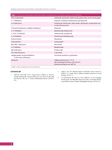Tablo 1. İnflamatuvar romatolojik hastalıklarda kullanılan biyolojik ajanlar ve hedefe yönelik sentetik DMARD’lar