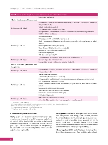 Tablo 1. Biyolojik ajanlar ve diğer imünsüpresif tedavi alan hastalarda HBV reaktivasyon riski*