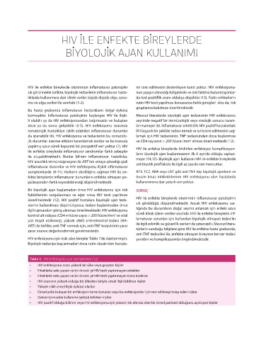 semptomlardır (8-11). Verilerin eksikliğine rağmen HIV ile en- RTX, TCZ, ABA veya UST gibi anti TNF dışı biyolojik ajanların ve