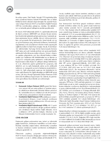 HGP’nin bütün dünyada olduğu gibi hastane enfeksiyonla- olmaktadır [1,29]. Hastanede kalış süresinin uzadığı ve ül-