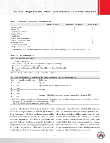 1’ de özetlenmiştir. CURB-65 skorlaması kolayca akılda idrar miktarının azalması dikkate alınabilir veya üre ölçü-