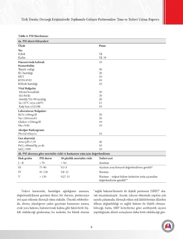 4b. PSI skoruna göre mortalite riski ve hastaneye yatış için değerlendirme