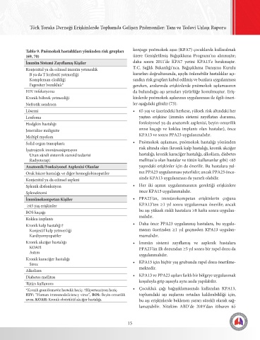 Tablo 9. Pnömokok hastalıkları yönünden risk grupları konjuge pnömokok aşısı (KPA7) çocuklarda kullanılmak