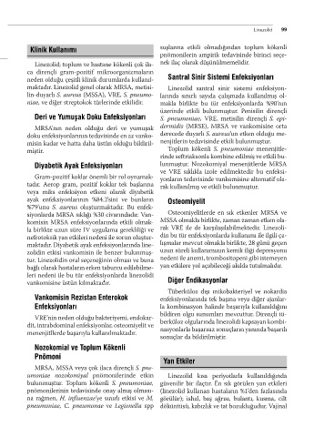 lin-duyarlı S. aureus (MSSA), VRE, S. pneumo- larında sınırlı sayıda çalışmada kullanılmış ol-