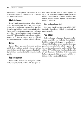 anaeroplara, P. aeruginosa, bakteroidesler, Tri- tırır. Metotreksatla birlikte kullanıldığında bu