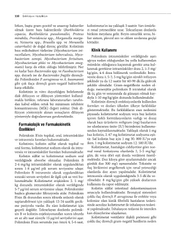 makla birlikte, referans laboratuvarları tarafın- Kolistinin dirençli enfeksiyonlarda kullanılan