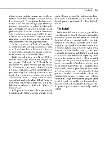 az etkili ve daha toksiktir. Parenteral polimiksin bağlı renal proksimal tübül hasarı görülür. Nef-