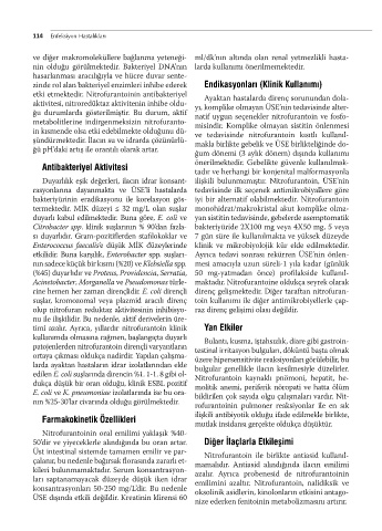 olup nitrofuran reduktaz aktivitesinin inhibisyo- raz direnç gelişimi olası değildir.
