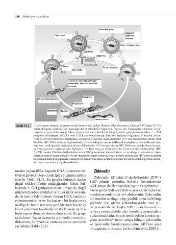Şekil 31.1. HIV’in yaşam döngüsü ve antiretroviral ilaçların etki yerleri (Kaynak 2’den alınmıştır). Mevcut ARV ilaçlar HIV’in