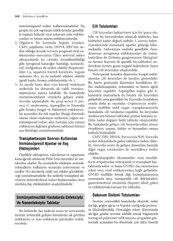immünsüpresif tedavi kullanmaktadırlar. Bu Cilt Tutulumları