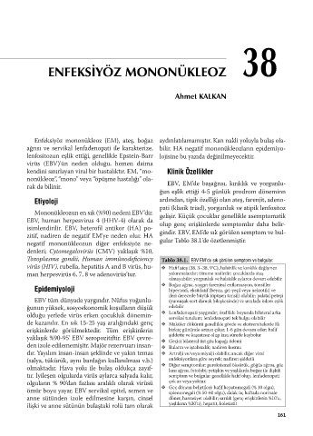 negatif mononükleozun diğer enfeksiyöz ne- gular Tablo 38.1’de özetlenmiştir.