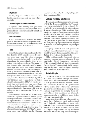 görülmektedir. Mononükleoz sendromunda ise Transplant hastalarında CMV hastalığını önle-