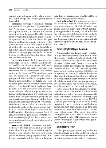 lardır. Genellikle yeterli sıvı tedavisine rağmen Enfeksiyon odağının kontrolü için etkin an-