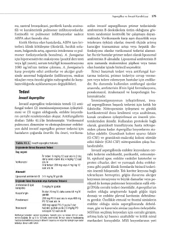 Tablo 41.1. Invazif aspergilloz tedavisi. edici faktör (GM-CSF) nötropeniden çıkışı hız-