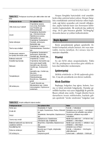 Tablo 54.1. Predispozan durumlara göre sıklıkla etken olan bak-