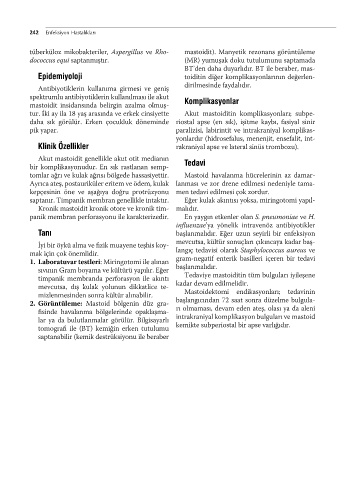 saptanır. Timpanik membran genellikle intaktır. Eğer kulak akıntısı yoksa, miringotomi yapıl-