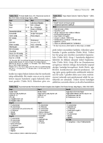 Serebrovasküler Hastalık, SS: Solunum Sayısı, TA: Arteriyel Tansiyon, lıdır (Tablo 58.6). Grup III’te ise Pseudomonas