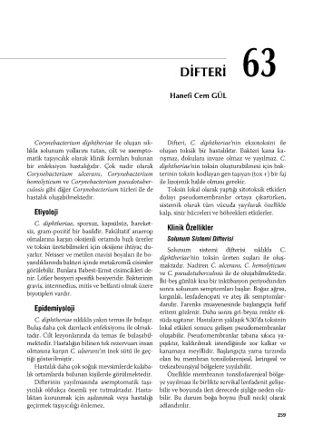 culosis gibi diğer Corynebacterium türleri ile de Toksin lokal olarak yaptığı sitotoksik etkiden