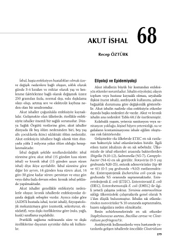 İshal, başta enfeksiyon hastalıkları olmak üze- Etiyoloji ve Epidemiyoloji