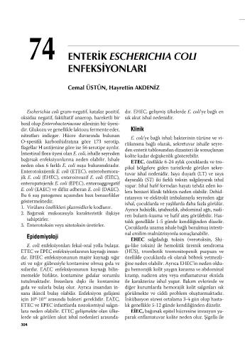 sulardır. EAEC enfeksiyonunun kaynağı bilin- ğu hemorajik kolit yaygın kanama ve abdominal
