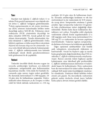 kıda toksijenik C. diffi cile gösterilmesidir. Doku önerilmektedir. Tedaviye rağmen semptomlar-