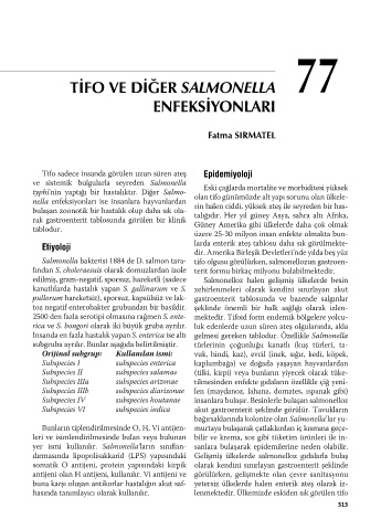 yer ismi kullanılır. Salmonella’ların sınıfl an- sanlara bulaşarak epidemilerine neden olabilir.