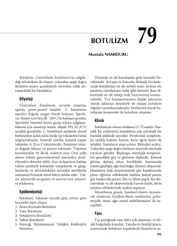 sıcaklık gereklidir. C. botulinum antijenik olarak talık bir enfeksiyöz hastalıktan çok nörolojik bir