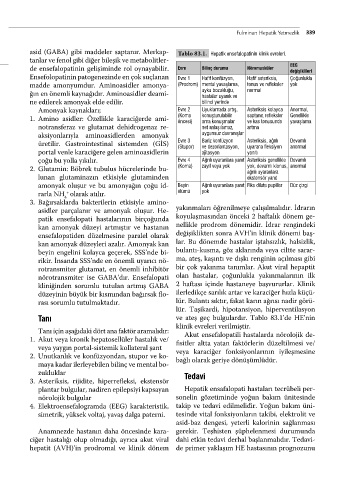 asid (GABA) gibi maddeler saptanır. Merkap- Tablo 83.1. Hepatik ensefalopatinin klinik evreleri.