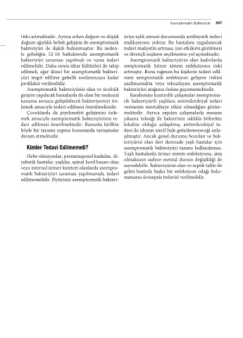 edilmeli, eğer ikinci bir asemptomatik bakteri- artmıştır. Buna rağmen bu kişilerin tedavi edil-
