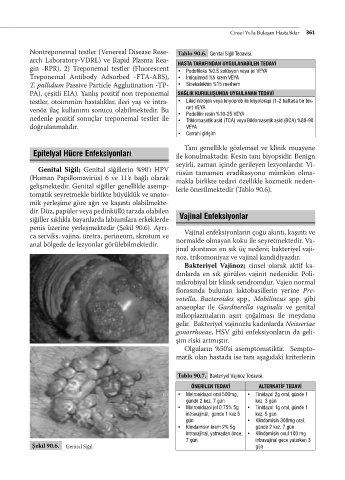 Nontreponemal testler (Venereal Disease Rese- Tablo 90.6. Genital Siğil Tedavisi.