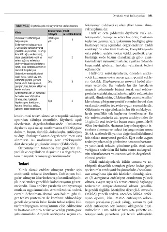 Tablo 95.2. Diyabetik ayak enfeksiyonlarının sınıflandırılması. feksiyonun ciddiyeti ve olası etken temel alına-