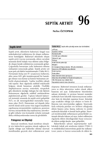 Septik Artrit Tablo 96.1. Septik artite yatkınlığa neden olan risk faktörleri.