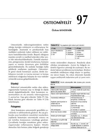 Osteomiyelit, mikroorganizmaların neden Tablo 97.1. Yaş gruplarına göre osteomiyelit etkenleri.