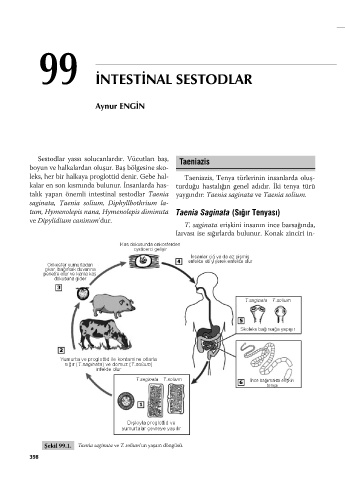 Şekil 99.1. Taenia saginata ve T. solium’un yaşam döngüsü.