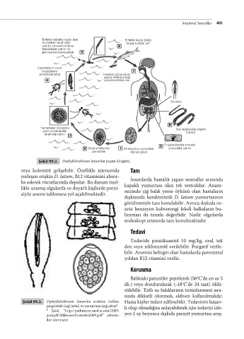Şekil 99.3. Diphyllobothrium latum’un scoleksi (solda), Hasta kişiler tedavi edilmelidir. Tedavinin başarı-