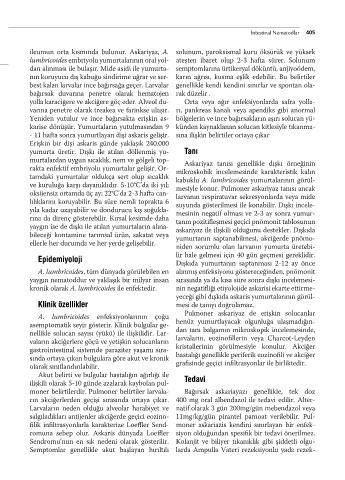 romuna sebep olur. Askaris dünyada Loeffl er siyon olduğundan spesifi k bir tedavi önerilmez.
