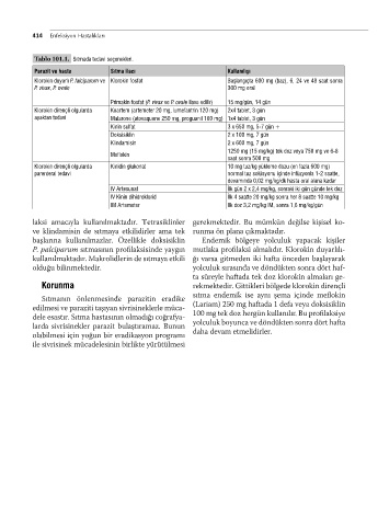 Tablo 101.1. Sıtmada tedavi seçenekleri.