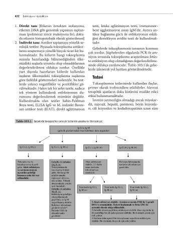 Tablo 103.1. Gebelerde toksoplazma serolojik testlerinin yorumu ve izlenecek yol.