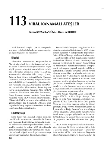 görülebilmesine rağmen bir kanamalı ateş virüsü- lı genetik grubu bulunmaktadır. Türkiye’den