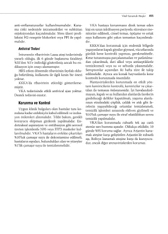 VKA tedavisinde etkili antiviral ajan yoktur. tıları ile temasın önlenmesidir. İyi havalandırıl-