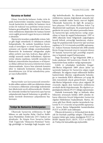 şında hantavirüsler insandan insana bulaşmaz. Ülkemizde hantavirüs ile ilgili ilk seropreve-