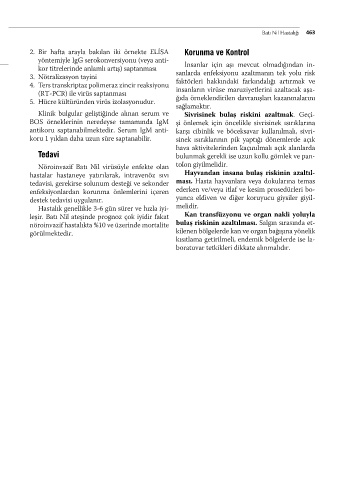 hastalar hastaneye yatırılarak, intravenöz sıvı Hayvandan insana bulaş riskinin azaltıl-
