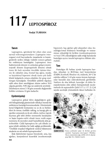 ateşlerin en sık sebebi leptospirozdur”. Şekil 117.1. Kanca şeklindeki uçları ile birlikte görülen