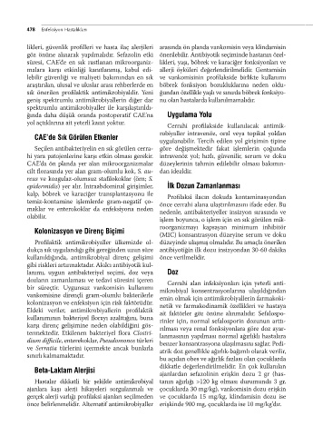 kullanımının bakteriyel florayı azalttığını, buna rinler için, normal sefalosporin dozunun arttı-