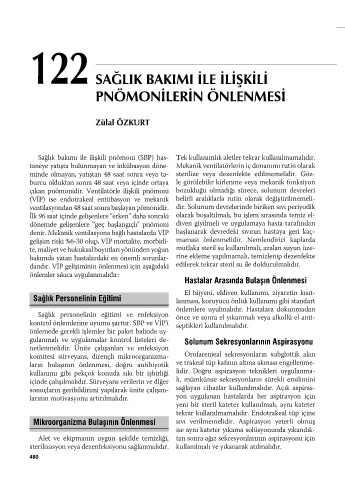 Sağlık bakımı ile ilişkili pnömoni (SBP) has- Tek kullanımlık aletler tekrar kullanılmamalıdır.