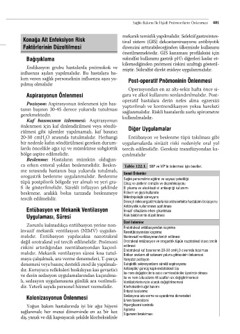 malıdır. Mekanik ventilasyon süresi kısa tutul- Biriken sıvıların alt solunum yoluna gitmesinin önlenmesi