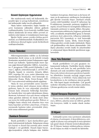 immünsüprese konakçıda), viral hemorajik en- enfeksiyonu, ve SARS’dır. Hasta odalarında özel