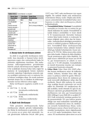 Tablo 124.2. Dezenfektanlar ve seviyeleri. 121 C veya 134 C ısıda sterilizasyon için uygun