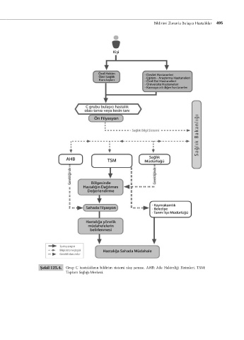 Bildirimi Zorunlu Bulaşıcı Hastalıklar 495 Şekil 125.4. Grup C hastalıkların bildirim sistemi akış şeması. AHB: Aile Hekimliği Birimleri. TSM: Toplum Sağlığı Merkezi.