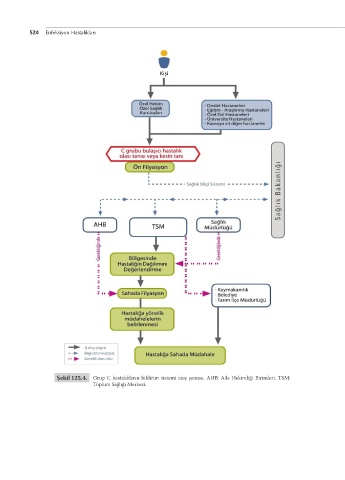 524 Enfeksiyon Hastalıkları Şekil 125.4. Grup C hastalıkların bildirim sistemi akış şeması. AHB: Aile Hekimliği Birimleri. TSM: Toplum Sağlığı Merkezi.